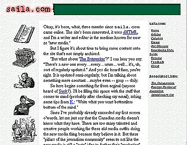 In November 1997, style sheets were implemented throughout the site to create a white "canvas" for the text to rest on. It degraded to a white cell, for older browsers.